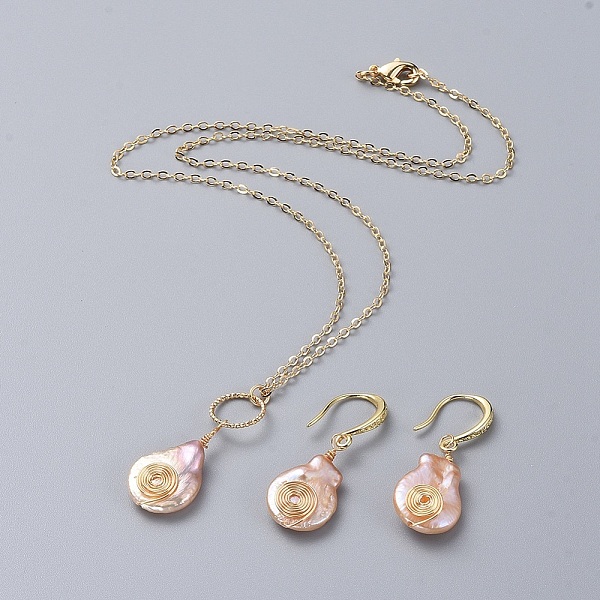 PandaHall Natural Baroque Pearl Keshi Pearl, Cultured Freshwater Pearl Jewelry Sets, Pendant Necklaces and Dangle Earrings, with Brass Cable... Price: $17.6 |