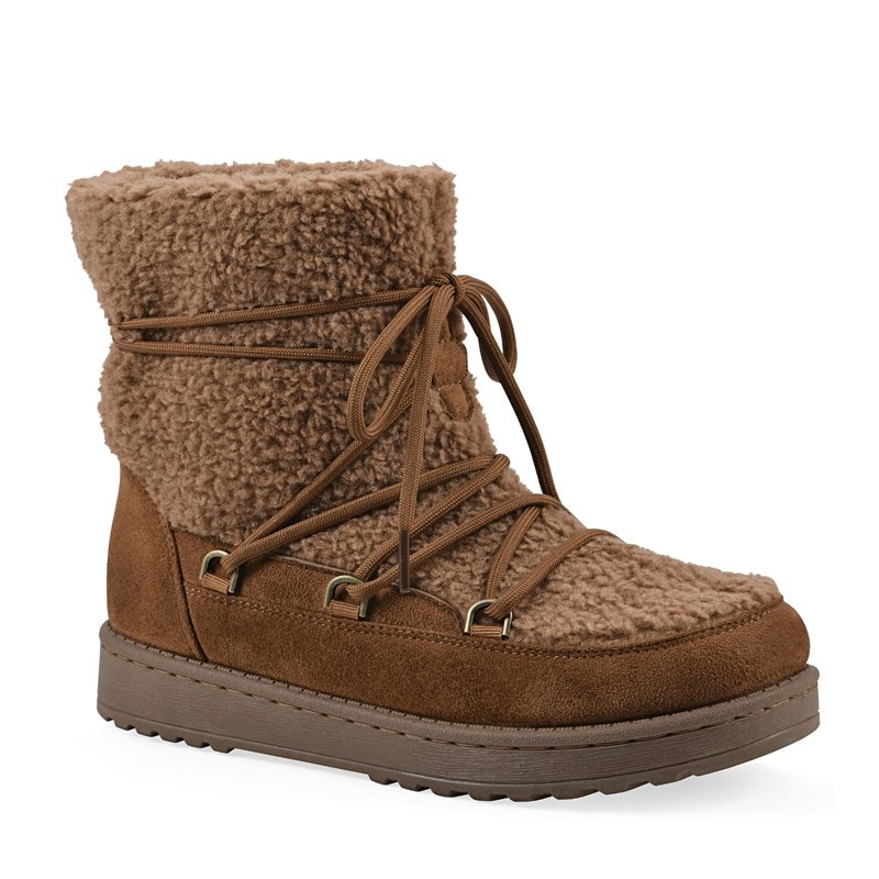 White Mountain Women's Isador Faux Sherpa Lace Up Boots (Chestnut) - Size 8.5 M Price: $78.99 Sale Price: $48.99