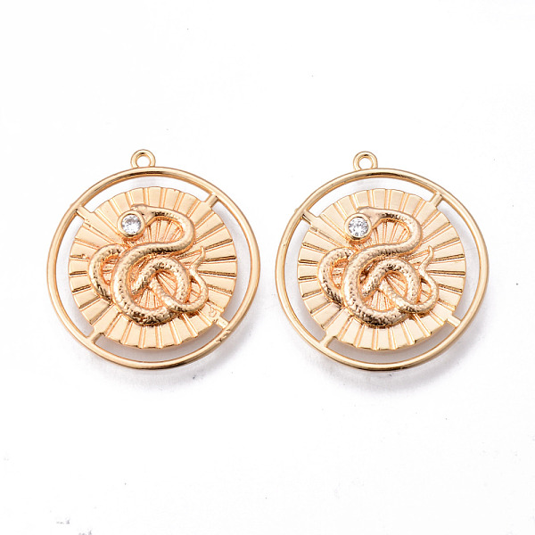 PandaHall Brass Micro Pave Clear Cubic Zirconia Pendants, Nickel Free, Flat Round with Snake, Real 18K Gold Plated, 25x23x2.5mm, Hole: 1.2mm... Price: $22.76 | PandaHall