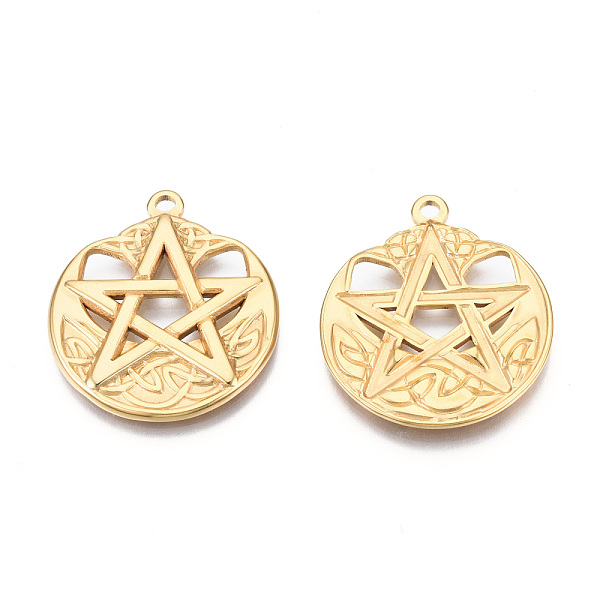 PandaHall Ion Plating(IP) 201 Stainless Steel Pendants, Flat Round with Star, Real 18K Gold Plated, 29x25x2mm, Hole: 2mm 201 Stainless Steel... Price: $9.79 | PandaHall