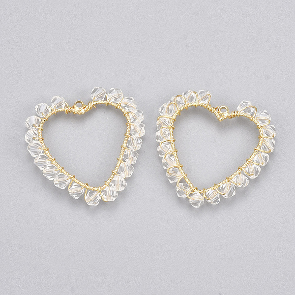 PandaHall Brass Pendants, with Glass Beads, Real 18K Gold Plated, Faceted, Rhombus, Clear, 25~26x25.5x3mm, Hole: 1.2mm Brass+Glass Heart... Price: $1.95 | PandaHall