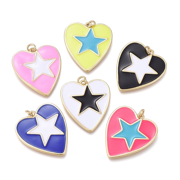 PandaHall Brass Enamel Pendants, Long-Lasting Plated, with Jump Rings, Real 18K Gold Plated, Heart with Star, Mixed Color, 29x26x2mm, Jump... Price: $11.42 | PandaHall