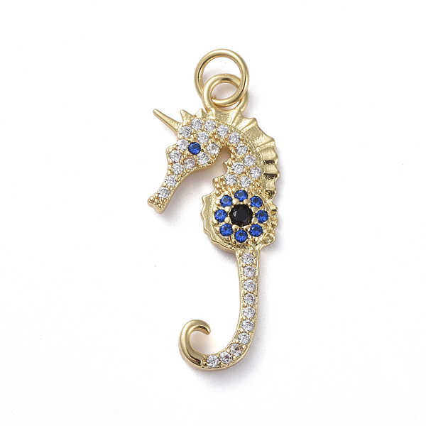 PandaHall Brass Micro Pave Cubic Zirconia Pendants, Long-Lasting Plated, Sea Horse, Colorful, Real 18K Gold Plated, 26x11x2mm, Hole: 3.1mm... Price: $13.05 | PandaHall