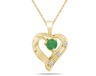 Emerald and Diamond Heart Pendant 14kt Yellow Gold
