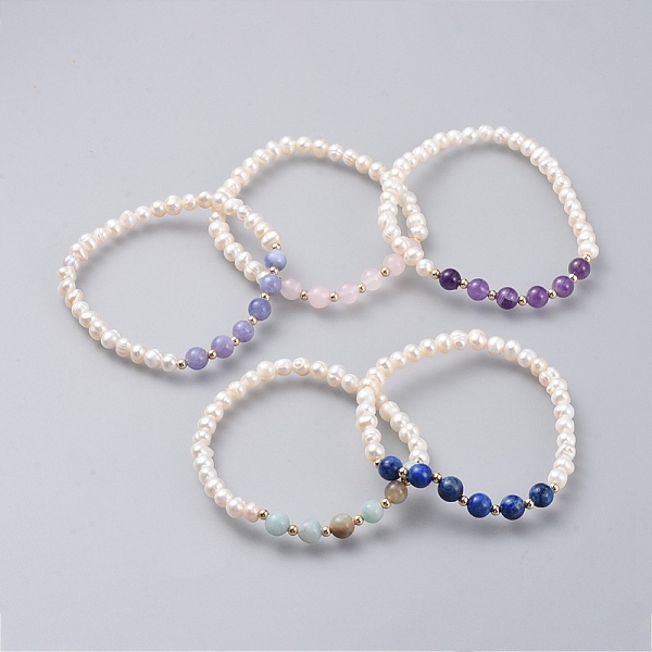 PandaHall Stretch Bracelets, with Natural Freshwater Pearl Beads, Natural Gemstone Beads and Real 18K Gold Plated Brass Beads, 2-1/4 inch... Price: $63.3 | PandaHall
