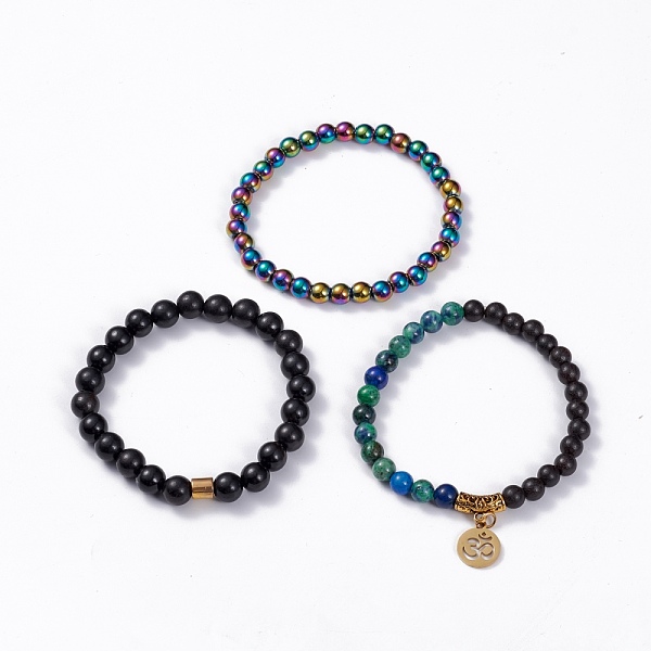 PandaHall 3Pcs 3 Style Gemstone & Wood Round Beaded Stretch Bracelet Sets with Om Symbol Charm, Yoga Jewelry for Women, Mixed Color, Inner... Price: $17.11 | PandaHall