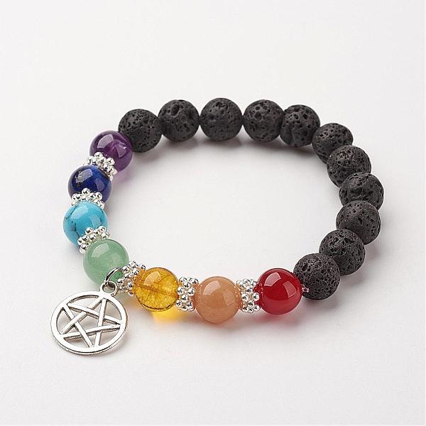 PandaHall Natural Lava Rock & Mixed Gemstone Round Beaded Stretch Bracelet, 7 Chakra Jewelry for Women, Inner Diameter: 2-1/4 inch(5.6cm)... Price: $19.38 | PandaHall