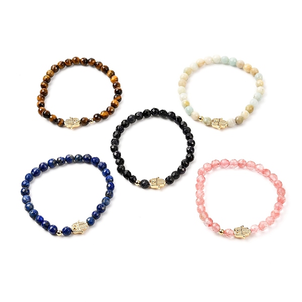PandaHall 4Pcs 4 Style Natural Mixed Gemstone Beaded Stretch Bracelets Set, Buddhist Head & Lotus & Hamsa Hand 201 Stainless Steel & Brass... Price: $20.28 | PandaHall