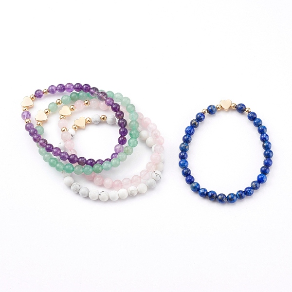 PandaHall Round Natural Gemstone Beads Stretch Bracelets, with Brass Heart Beads, Golden, Inner Diameter: 2-1/4 inch(5.6cm) Mixed Stone Price: $5.27 | PandaHall