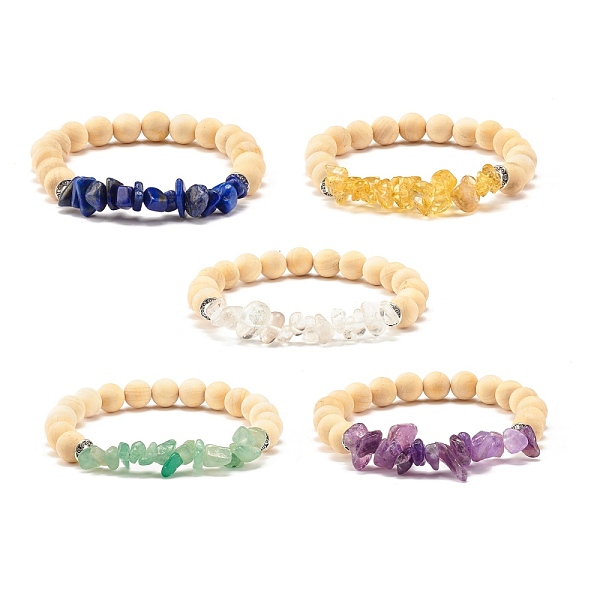 PandaHall 7Pcs 7 Style Natural Wood & Mixed Gemstone Round Beaded Stretch Bracelets Set, Chakra Yoga Jewelry for Women, Inner Diameter: 2... Price: $32.13 | PandaHall