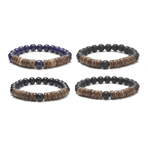 PandaHall Natural Lava Rock & Coconut Stretch Bracelet with Gemstone Beads, Essential Oil Gemstone Jewelry for Women, Inner Diameter: 2-1/4... Price: $15.01 | PandaHall