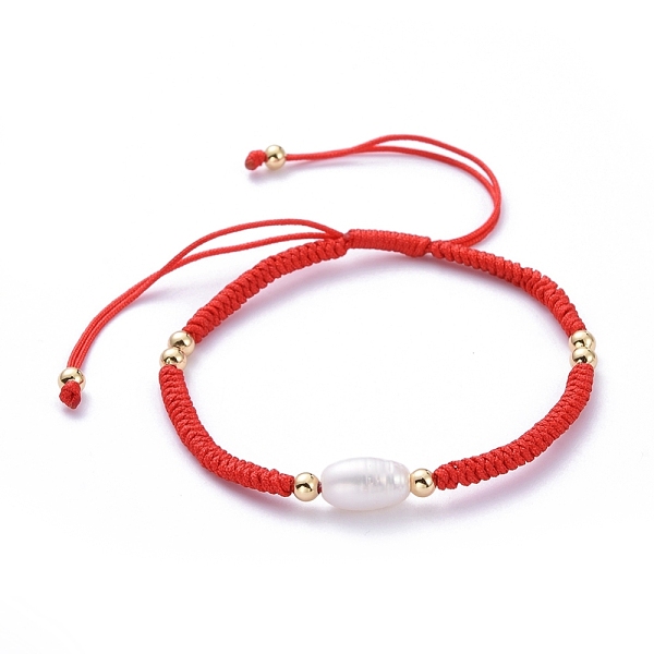 PandaHall Adjustable Nylon Thread Braided Beads Bracelets, Red String Bracelets, with Natural Cultured Freshwater Pearl Beads and Brass... Price: $22.25 | PandaHall