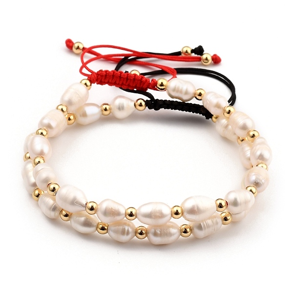 PandaHall Adjustable Nylon Thread Braided Beads Bracelets, with Natural Cultured Freshwater Pearl Beads and Brass Beads, Real 18K Gold... Price: $40.45 | PandaHall