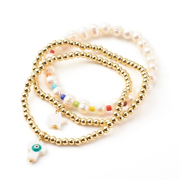 PandaHall 3Pcs 3 Styles Natural Cultured Freshwater Pearl Stretch Beaded Bracelets Sets, with Glass Seed Beads, Mixed Color, Inner Diameter... Price: $31.81 | PandaHall