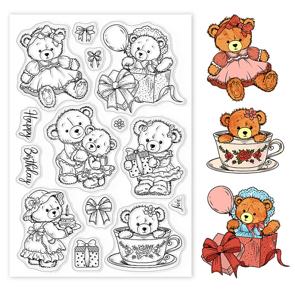 PandaHall GLOBLELAND Happy Birthday Clear Stamps Gift Teddy Bear Teacup Silicone Clear Stamp Seals for Cards Making DIY Scrapbooking Photo... Price: $5.99 | PandaHall