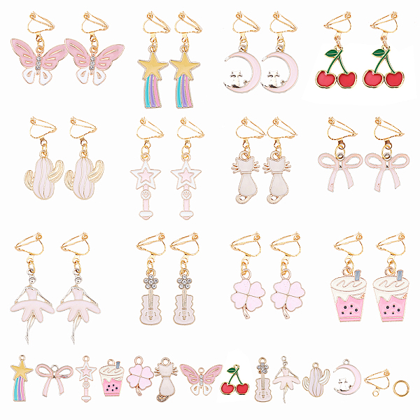 PandaHall SUNNYCLUE DIY Clip-on Earring Making, with Alloy Enamel Pendants, Brass Clip-on Earring Findings, Iron Jump Rings, Golden & Light...