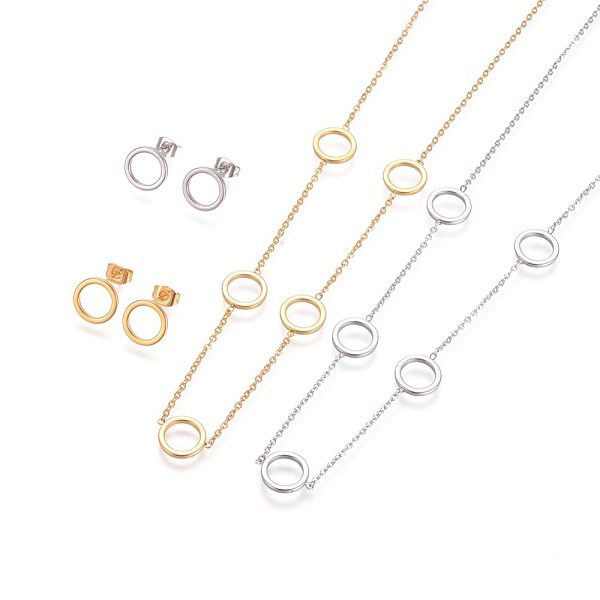 PandaHall Round Ring 304 Stainless Steel Jewelry Sets, Cable Chains Pendant Necklaces and Stud Earrings, with Ear Nuts and Lobster Claw... Price: $0 | PandaHall