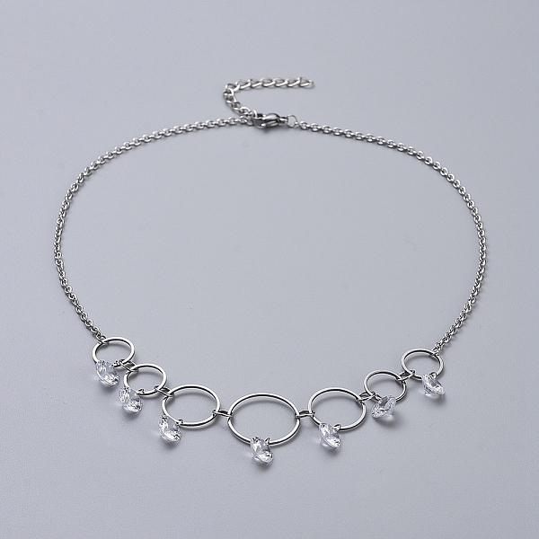 PandaHall 304 Stainless Steel Necklaces, with Cubic Zirconia Charms, Linking Rings, Cable Chains & Lobster Claw Clasps, Stainless Steel... Price: $0 | PandaHall