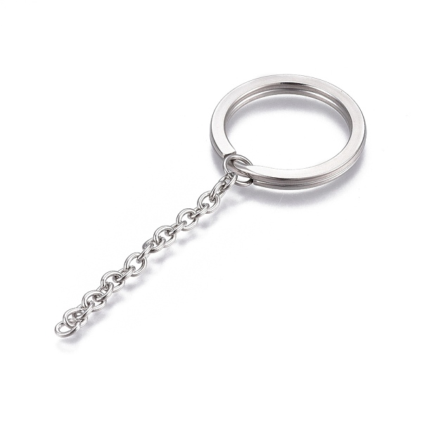 PandaHall Polishing 304 Stainless Steel Split Key Rings, Keychain Clasp Findings, with Extended Cable Chains, Stainless Steel Color, 84mm... Price: $0 | PandaHall