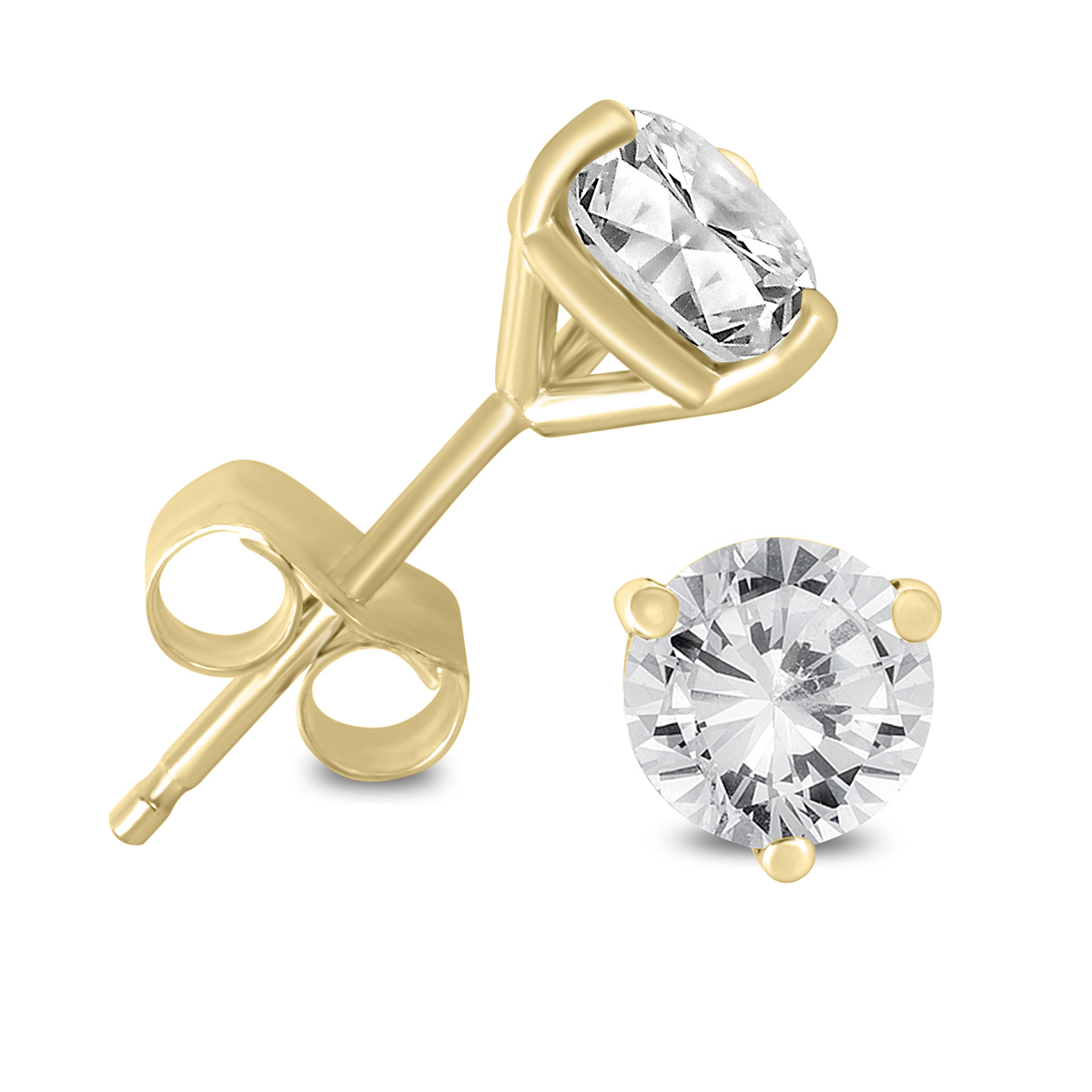3/4 Carat TW Certified Martini Set Round Diamond Solitaire Earrings in 14K Yellow Gold (I-J Color, I1-I2 Clarity) Price: $2679 | Szul.com