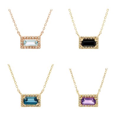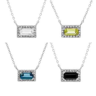 Baguette Cut Gemstone and 0.06 CT. T. W. Diamond Halo Pendant Necklace in 14K Gold:- Onyx, White Gold Price: $279 | Sam's Club