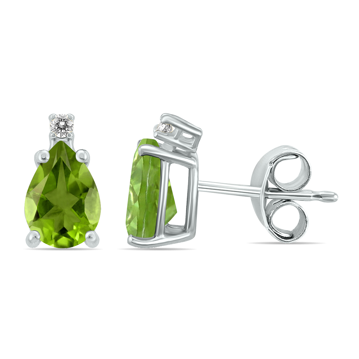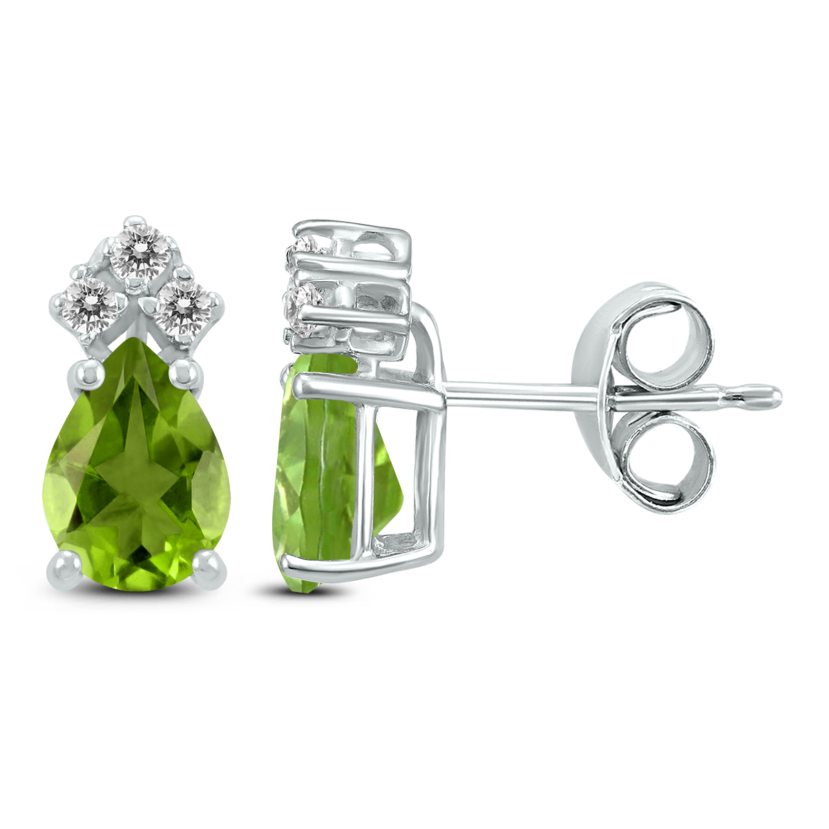14K White Gold 6x4MM Pear Peridot and Diamond Earrings