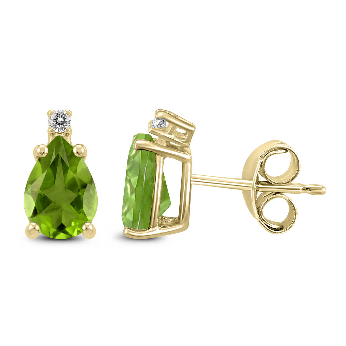 14K Yellow Gold 8x6MM Pear Peridot and Diamond Earrings