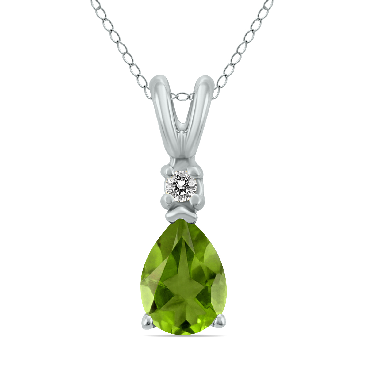 14K White Gold 6x4MM Pear Peridot and Diamond Pendant