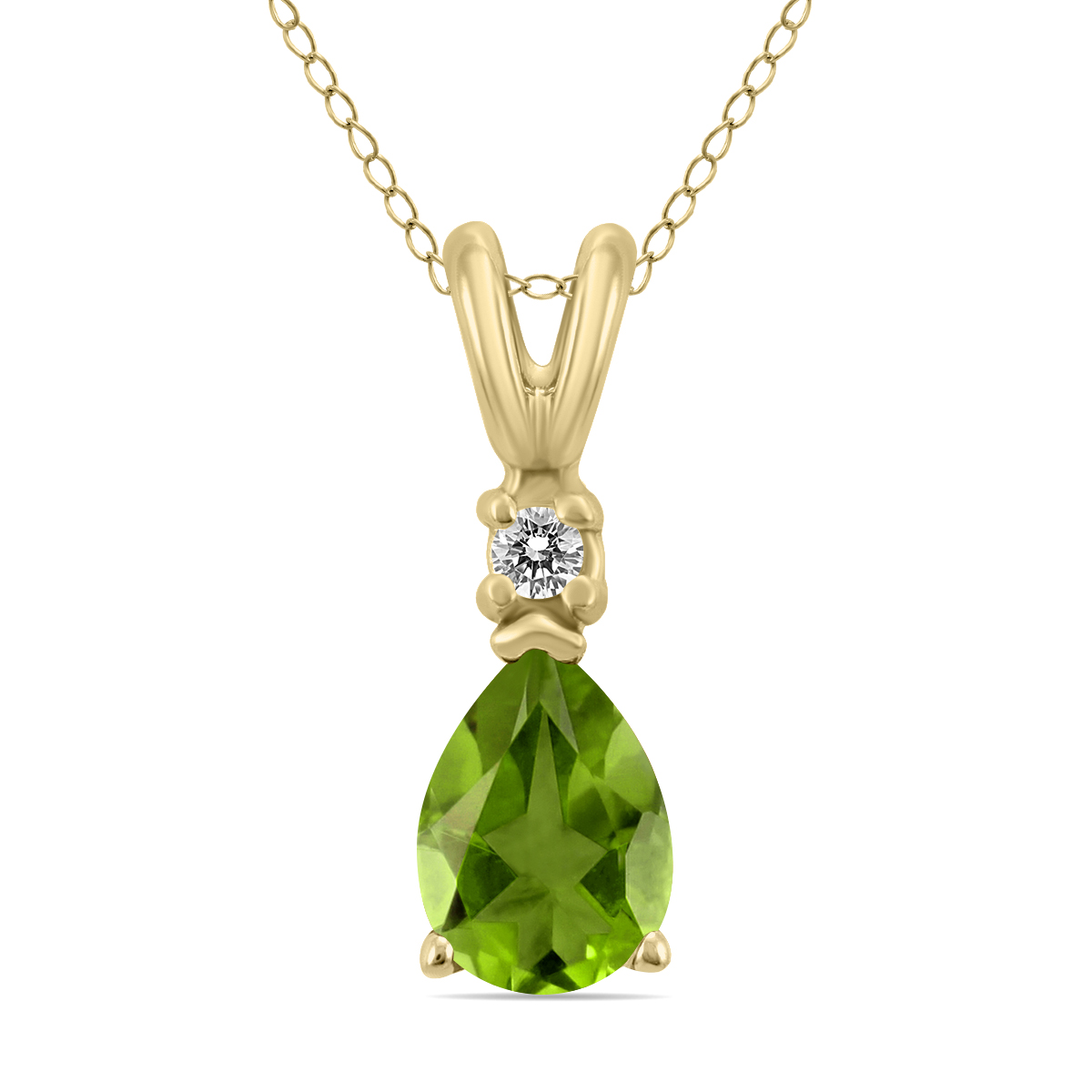 14K Yellow Gold 8x6MM Pear Peridot and Diamond Pendant