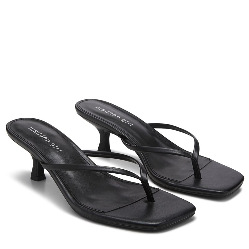 Madden Girl Women's Charlene Thong Kitten Heel Sandals (Black) - Size 8.5 M Price: $49.99 | Famous Footwear