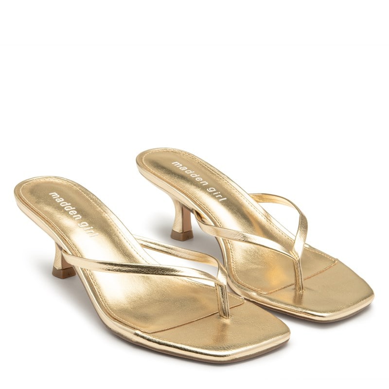 Madden Girl Women's Charlene Thong Kitten Heel Sandals (Gold) - Size 10.0 M Price: $49.99 Sale Price: $29.98