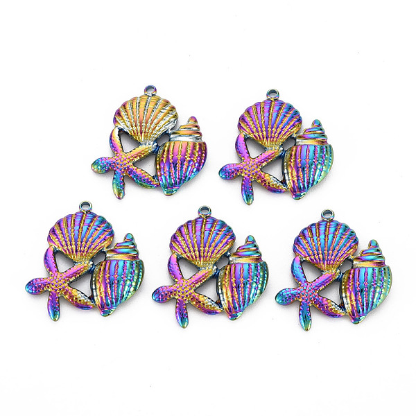 PandaHall 201 Stainless Steel Pendants, Shell with Conch & Starfish, Rainbow Color, 23x21x4.5mm, Hole: 1.4mm 201 Stainless Steel Shell Shape Price: $9.3 | PandaHall