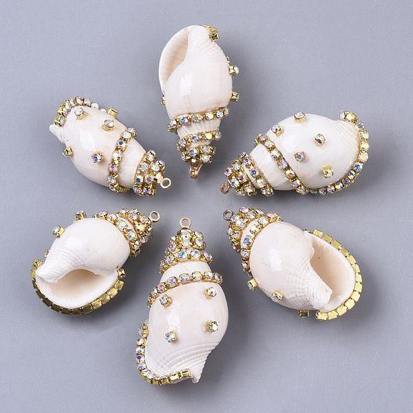 PandaHall Natural Conch Shell Pendants, with Brass Rhinestone Cup Chains and Iron Loops, Golden, Beige, 30~37.5x17~21.5x17~21.5mm, Hole... Price: $11.42 | PandaHall