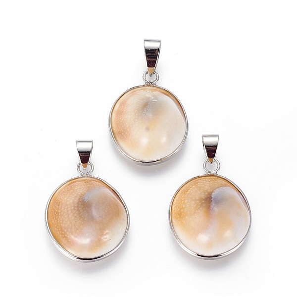 PandaHall Conch Shell Pendants, with Brass Findings, Flat Round, Platinum, 25.5x19~19.5x7.5~8mm, Hole: 5x7mm Other Sea Shell Flat Round Price: $13.05 | PandaHall