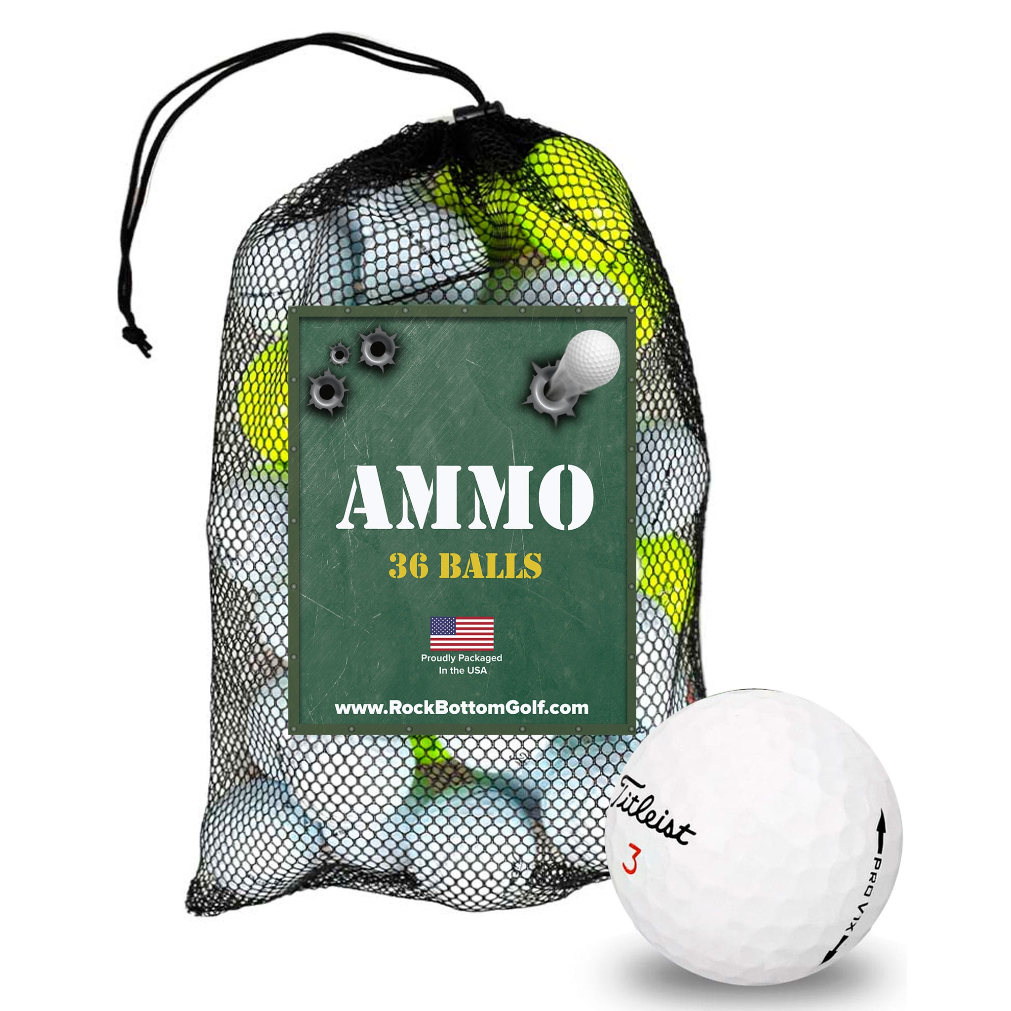 .jpg) Titleist Pro V1 Near Mint Recycled Used Used Golf Balls *36-Ball Ammo Bag* White Price: $50.96 Sale Price: $38.22