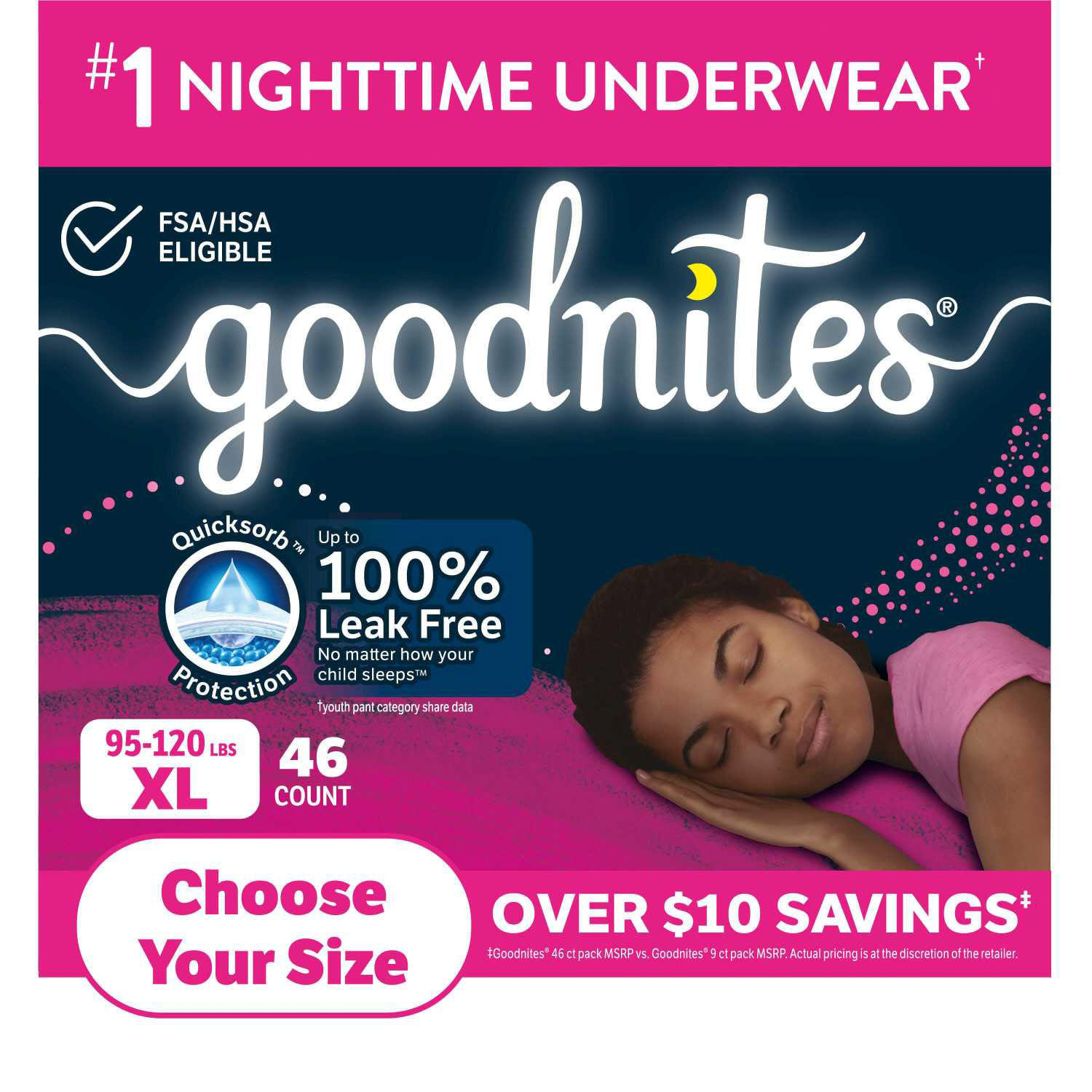 Goodnites Bedtime Underwear for Girls - XL - 46 ct.( 95 - 140+ lbs. ):- XL Price: $41.44 | Simply Wholesale