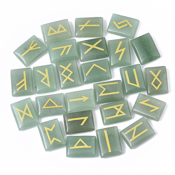 PandaHall Natural Green Aventurine Cabochons, Divination Stone, Rectangle with Runes/Futhark/Futhorc, 20x15x6.5mm, 25pcs/et Green Aventurine... Price: $19.58 | PandaHall