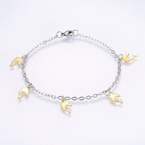 PandaHall 304 Stainless Steel Charm Bracelets, with Lobster Claw Clasps, Dolphin, Golden & Stainless Steel Color, 7-7/8 inch(20cm), 2.5mm... Price: $9.79 | PandaHall