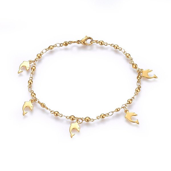 PandaHall 304 Stainless Steel Charm Bracelets, with Lobster Claw Clasps, Dolphin, Golden, 8-1/4 inch(21cm), 3mm 304 Stainless Steel Price: $14.69 | PandaHall