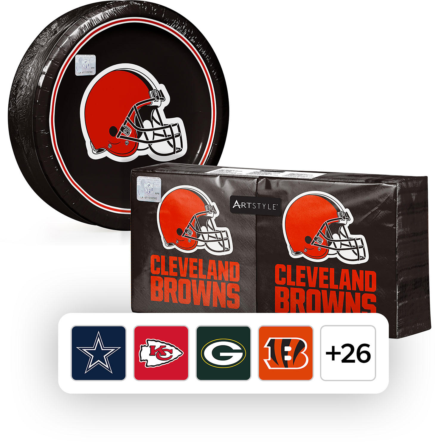 NFL Licensed Plates and Napkins Kit, 285 ct. - Cleveland Browns:- Cleveland Browns Price: $24.98 | Sam's Club
