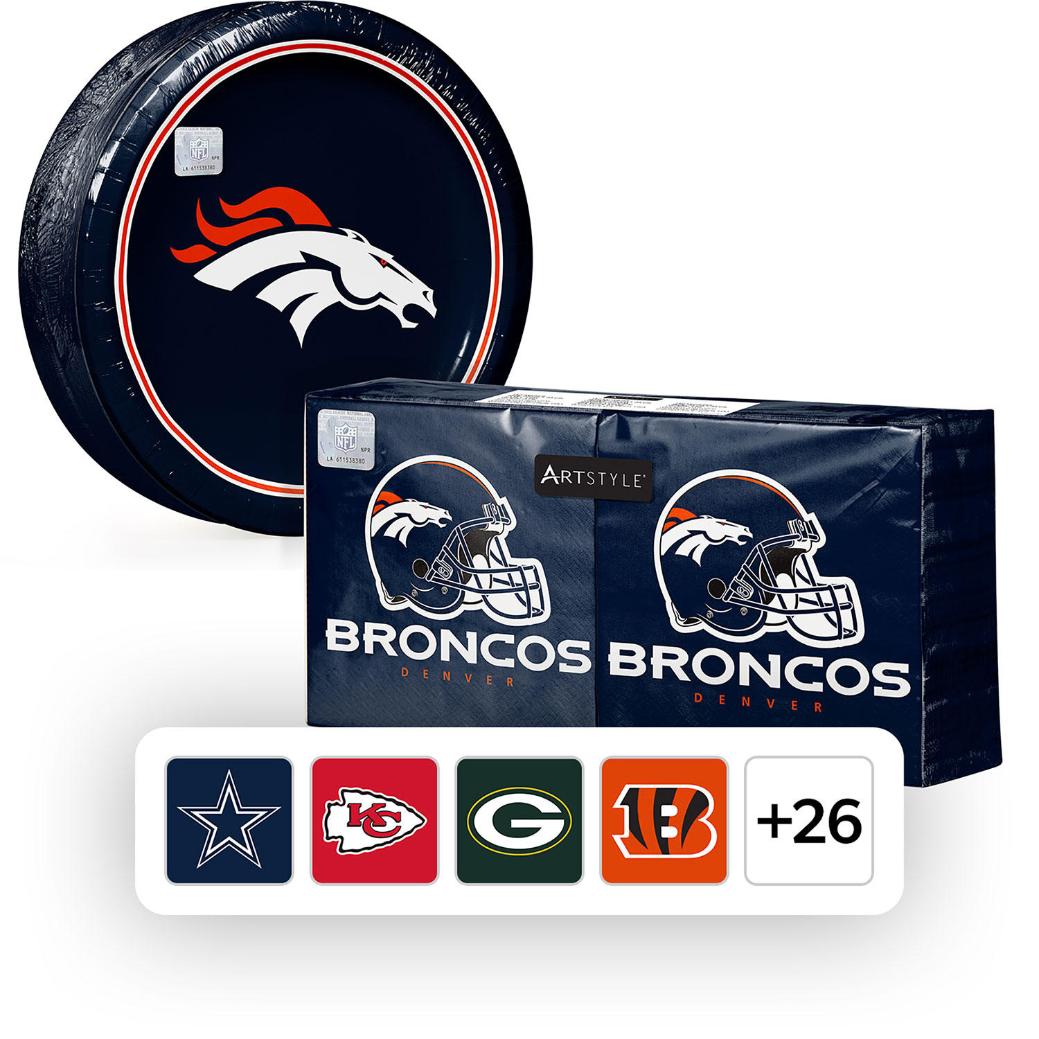 NFL Licensed Plates and Napkins Kit, 285 ct. - Denver Broncos:- Denver Broncos Price: $24.98 | Sam's Club
