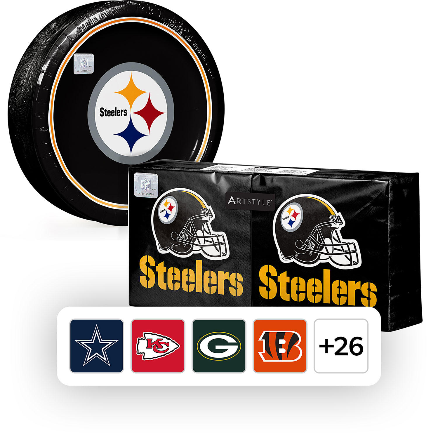 NFL Licensed Plates and Napkins Kit, 285 ct. Pittsburgh Steelers:- Pittsburgh Steelers Price: $24.98 | Sam's Club