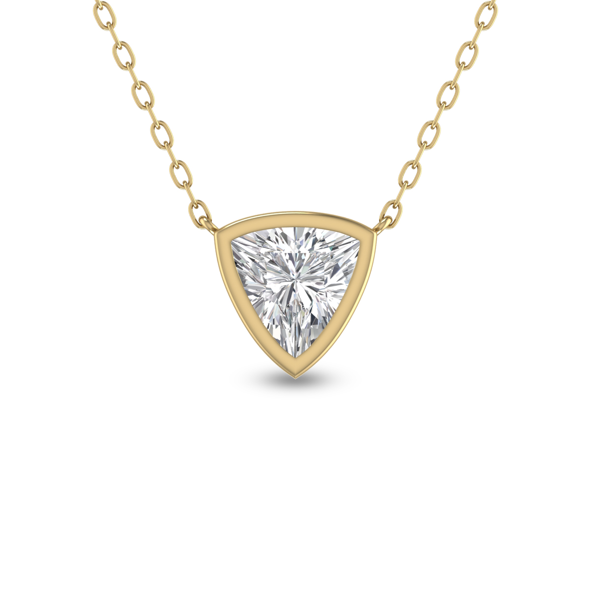 Lab Grown 1/2 Carat Trillion Shaped Bezel Set Diamond Solitaire Pendant in 14K Yellow Gold Price: $809 | Szul.com