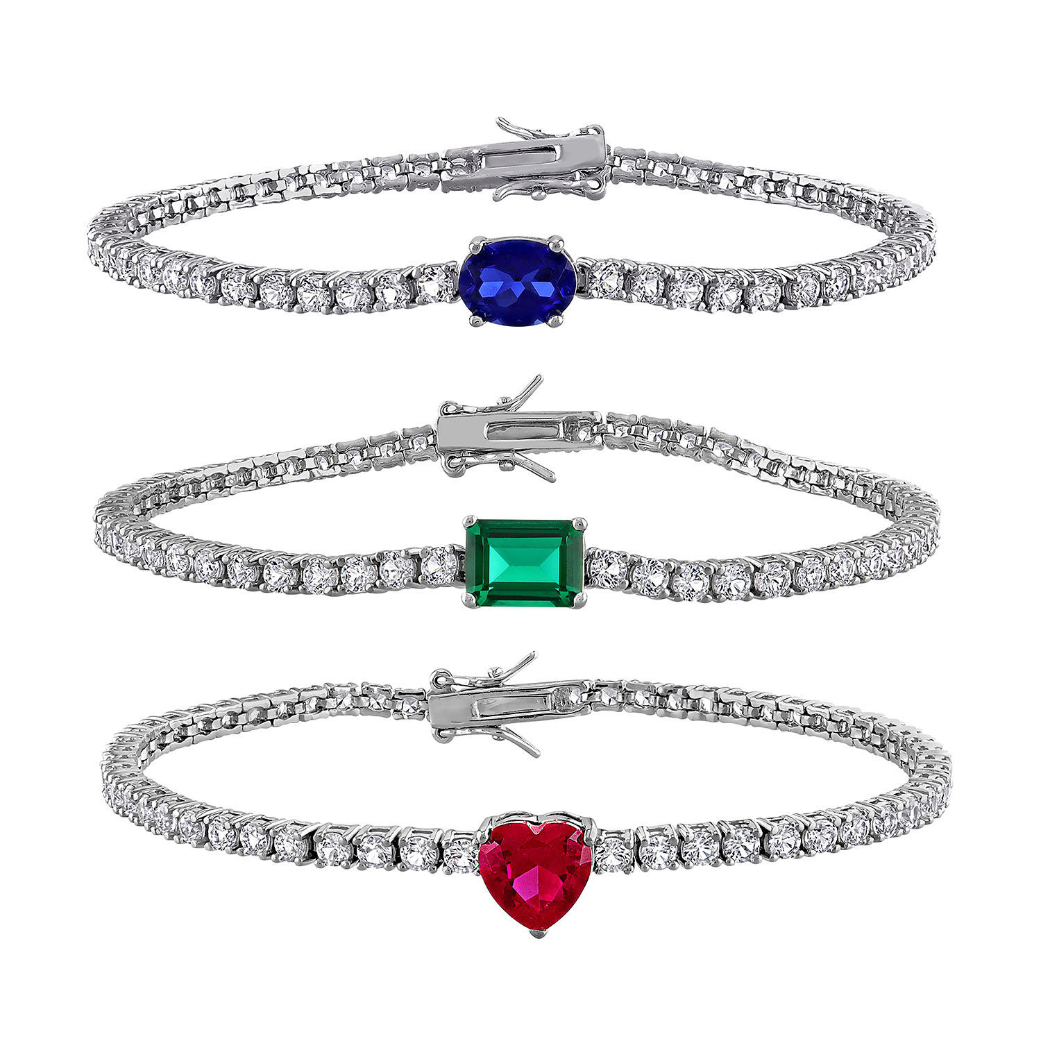 Created Gemstone and Created White Sapphire Tennis Bracelet in Sterling Silver - 7.25 in:- Emerald Price: $75 | Sam's Club