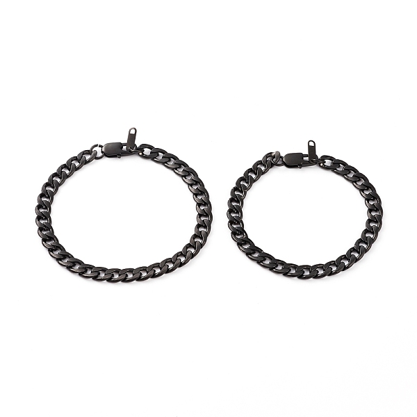PandaHall Couple Bracelets Sets, 304 Stainless Steel Cuban Link Chain Bracelets, with Lobster Claw Clasps, Electrophoresis Black, 8-1/2 inch... Price: $22.45 | PandaHall