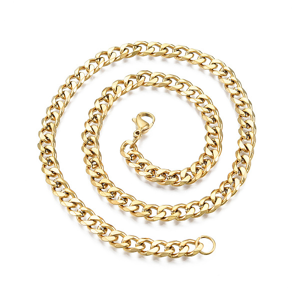 PandaHall Men's 304 Stainless Steel Cuban Link Chain Necklaces, with Lobster Claw Clasps, Textured, Golden, 19.6"(50cm) 304 Stainless Steel Price: $19.58 | PandaHall