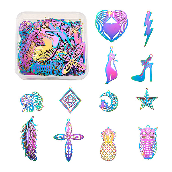 PandaHall Fashewelry 48Pcs 12 Styles 201 Stainless Steel Filigree Pendants, Etched Metal Embellishments, Rainbow Color, 4pcs/style 201... Price: $11.84 | PandaHall