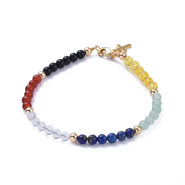 PandaHall Natural Gemstone Salvation Bracelet, Beaded Bracelets, with Brass Round Beads, 304 Stainless Steel Cross Charms and Lobster Claw... Price: $24.42 | PandaHall