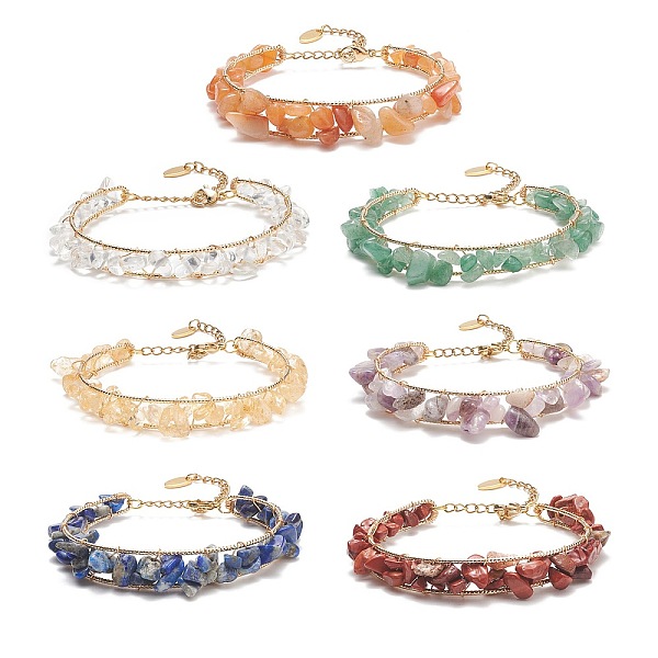 PandaHall Chakra Natural Gemstone Chips Beaded Bracelets for Women, with Alloy Clasps, 6-1/2 inch(16.6cm) Mixed Stone Chip Price: $8.45 | PandaHall
