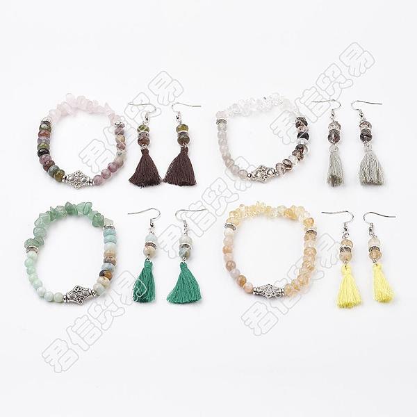 PandaHall Natural & Synthetic Mixed Stone Jewelry Sets, Bracelets & Dangle Earrings, with Brass Finding and Cotton Thread Tassels, Mixed... Price: $18.46 | PandaHall